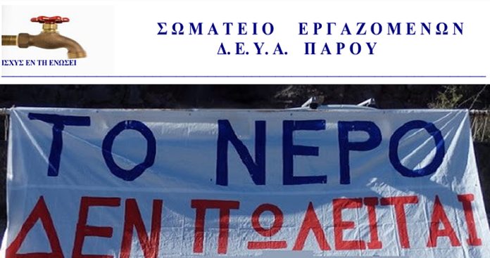 Το ψήφισμα του Σωματείου Εργαζομένων της ΔΕΥΑ Πάρου αναφέρει: